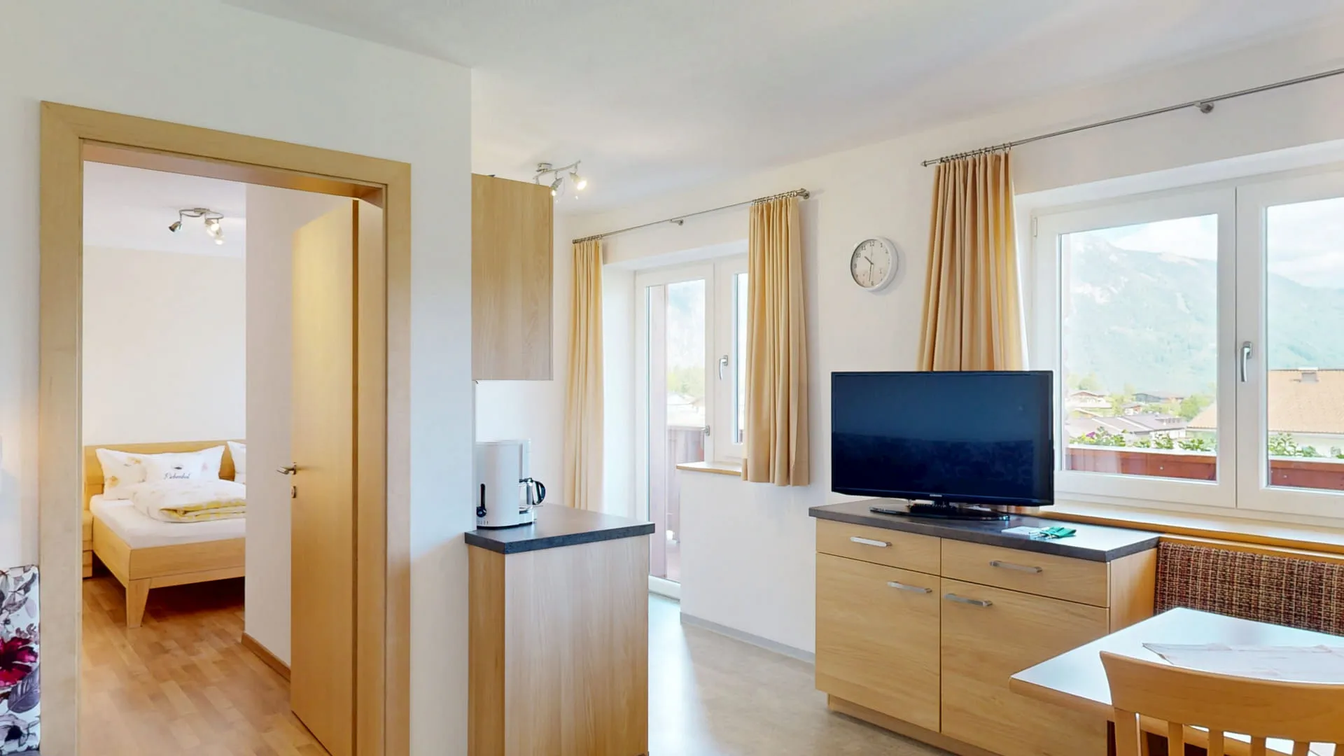 Das Appartement "Panorama Blick" ist für 1-4 Personen geeignet und besteht aus einem Doppelbettzimmer, einem Zimmer mit Etagen/Stockbett, einer Küche und einem Bad mit DU/WC.